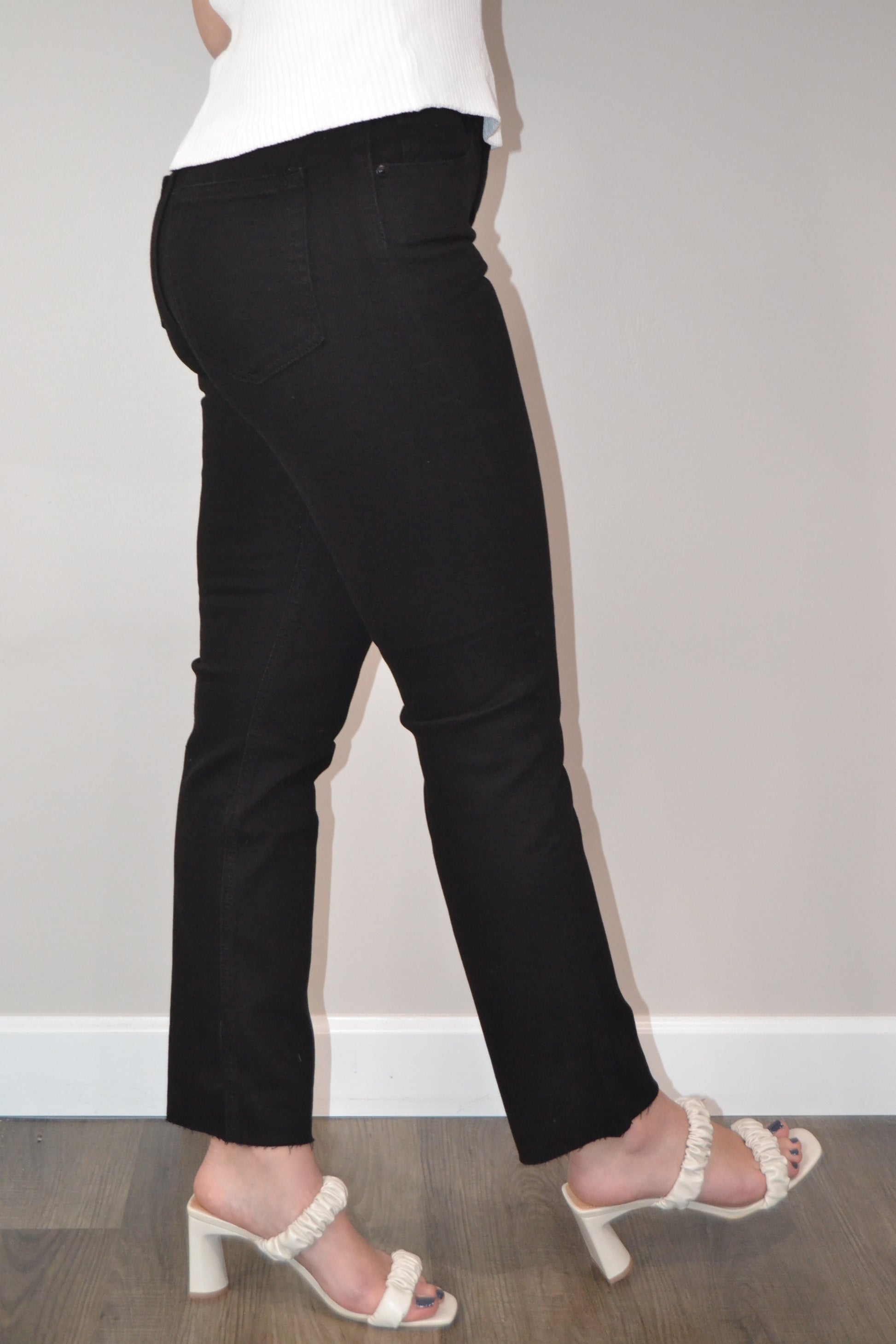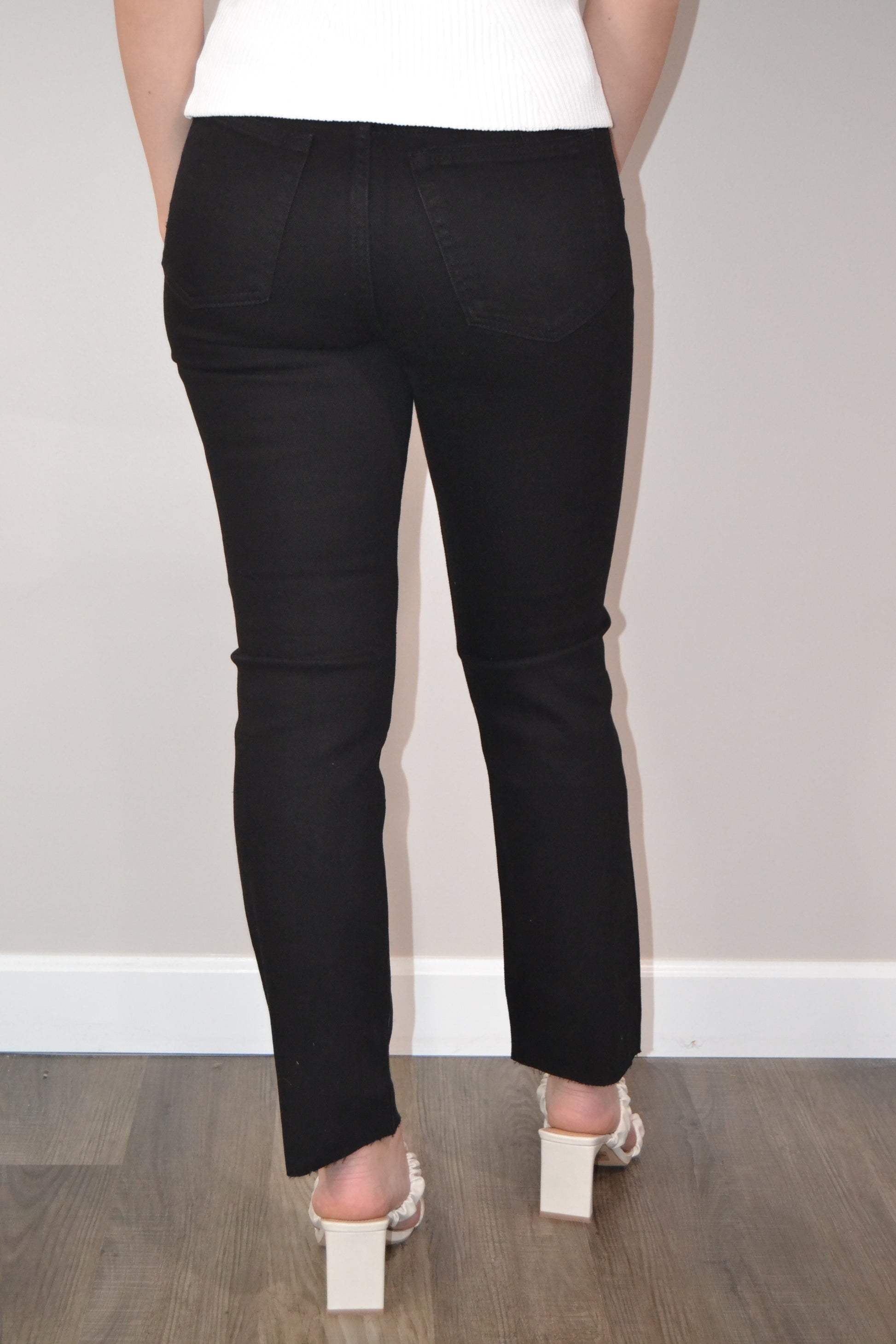 - High Rise Clean Straight Leg with Scissor Cut Off Hem