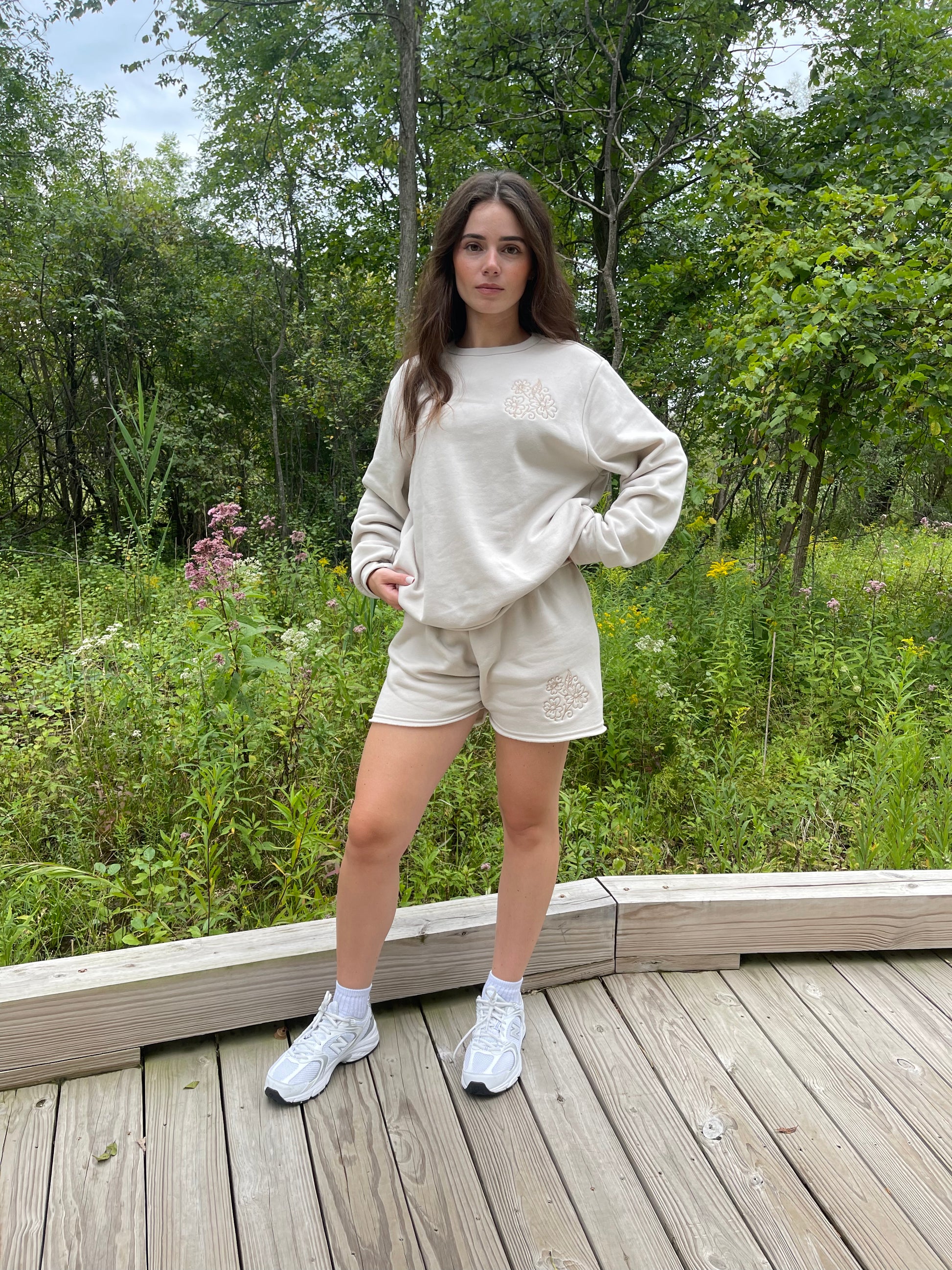- 52% Airlume Combed and Ring-spun Cotton 48% Polyester Fleece 32 single, 8.0oz